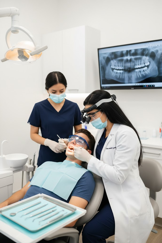 During your dental exam and X-rays, Dr. Emmy ensures a thorough assessment of your oral health. The process begins with a detailed examination of your teeth and gums, allowing us to identify any issues or concerns. Our state-of-the-art X-rays provide a comprehensive view, revealing hidden problems that may not be visible during the visual inspection.